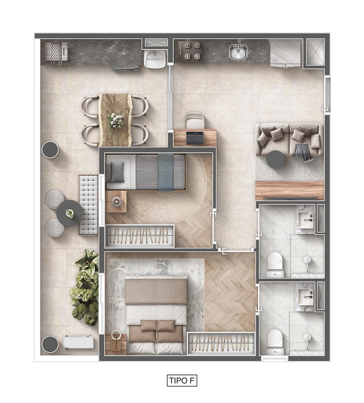 Planta de 2 Dormitórios